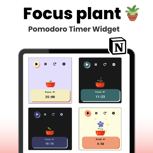 Notion Template Widget || Focus Plant Pomodoro Timer: ADHD Support & Visual Progress Marker